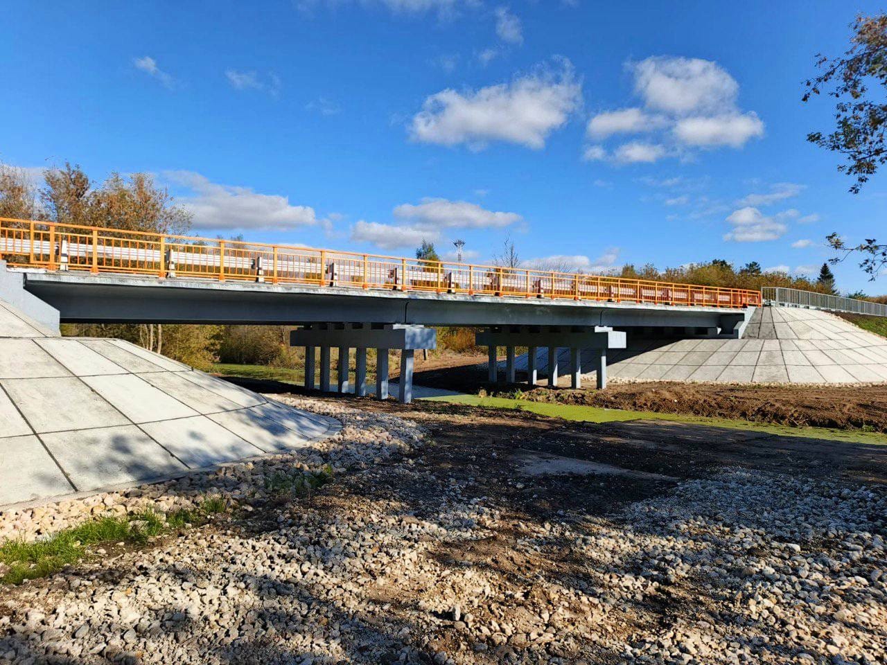 Подрядная организация выполнила ремонт опор, обновила 18 балок пролетного строения, восстановила мостовое полотно и устроила двухслойное асфальтобетонное покрытие. Также на объекте отремонтировали деформационные швы, сопряжения и подходы к мосту, выполнили укрепление конусов береговых опор, обустроили водоотвод. Для обеспечения безопасности движения установили дорожные знаки, перильное и барьерное ограждения, а также нанесли разметку.
